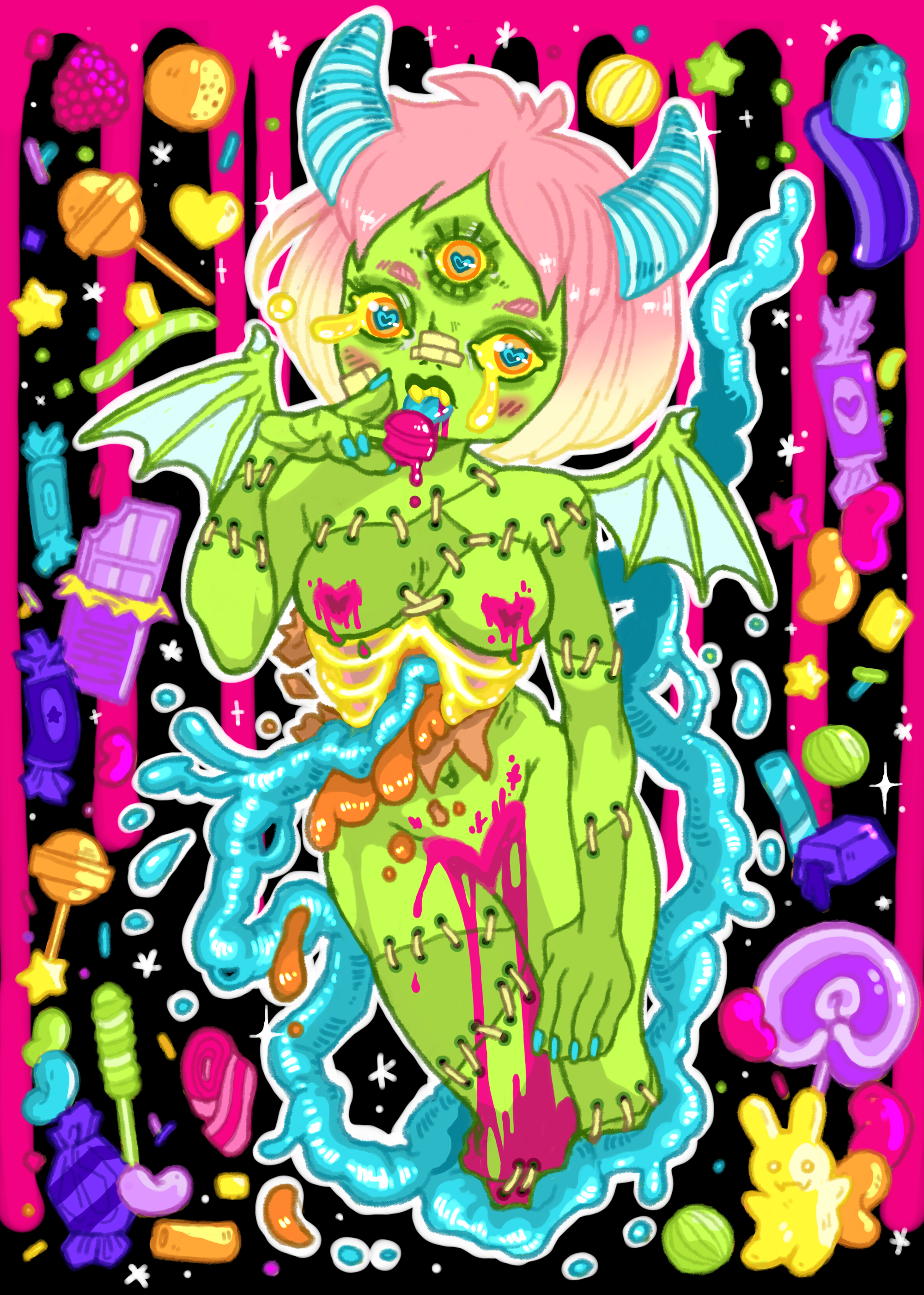 an anatomically correct heart displaying text that reads 'monsterporn'; another line of text reads 'art by iiintangible'